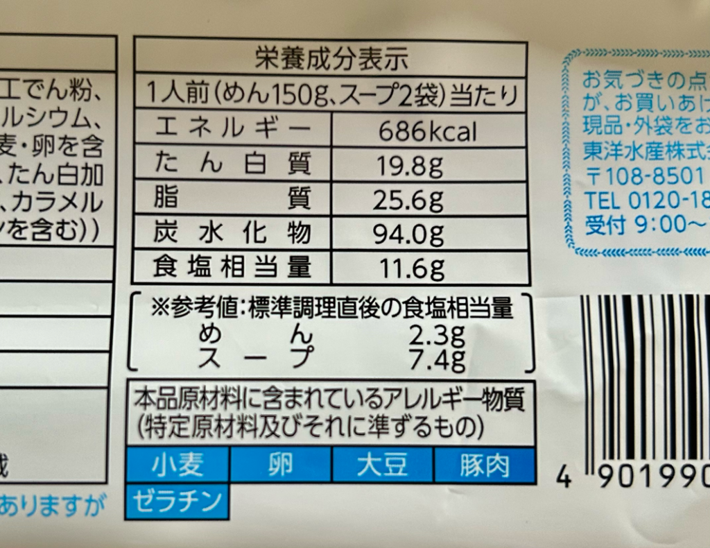 栄養成分表示とこの商品に使用されているアレルギー物質