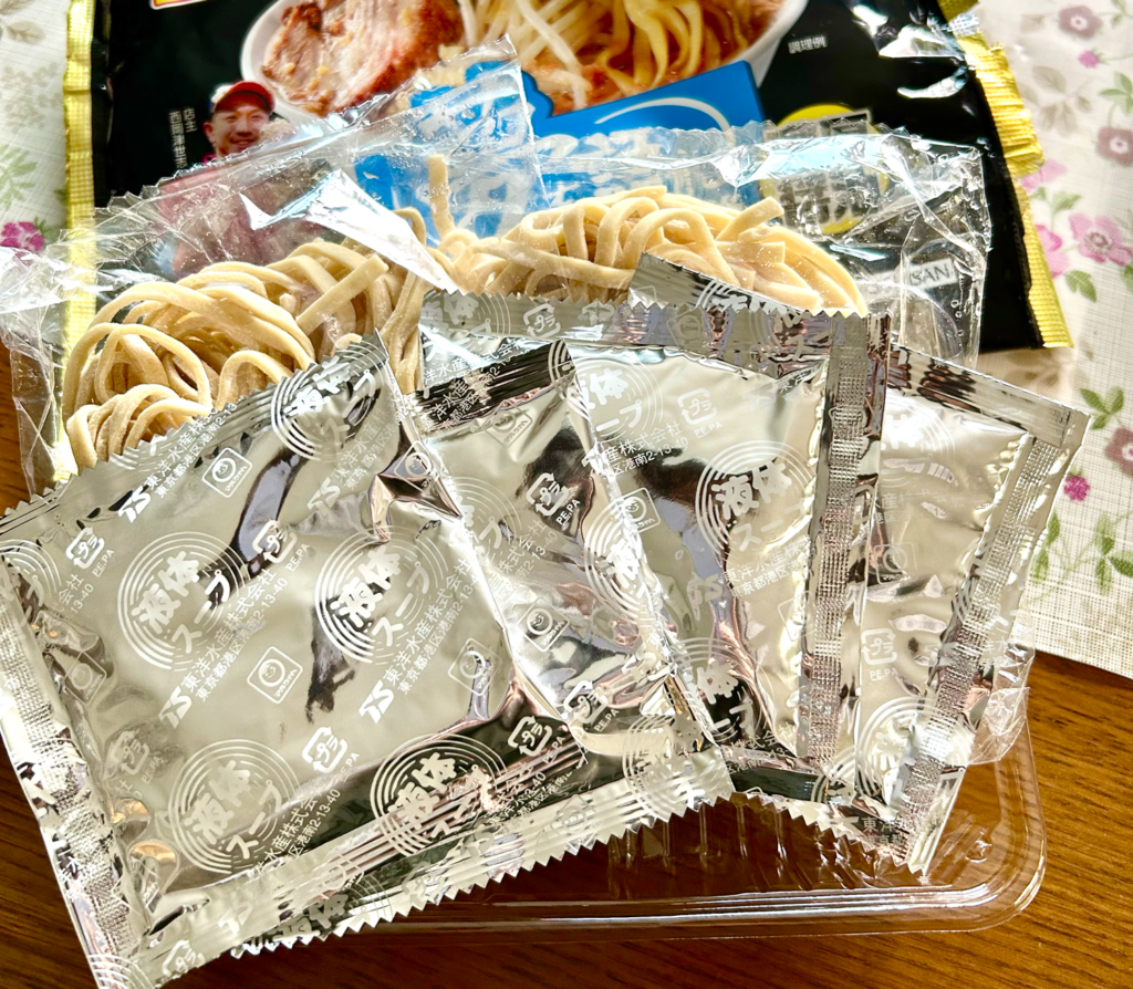 スープ4袋は全て内容が同じもの。※一般的な生ラーメンはスープ2袋